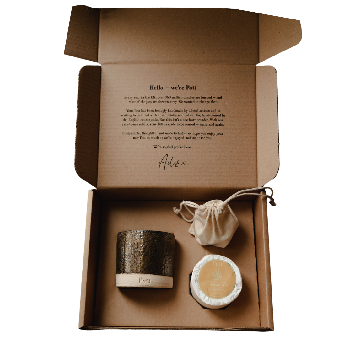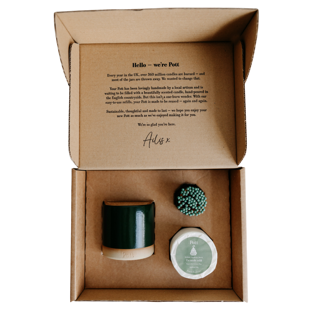 Our candles are refillable and designed to last a lifetime. All our pottery is handmade in the UK by artisan potters.