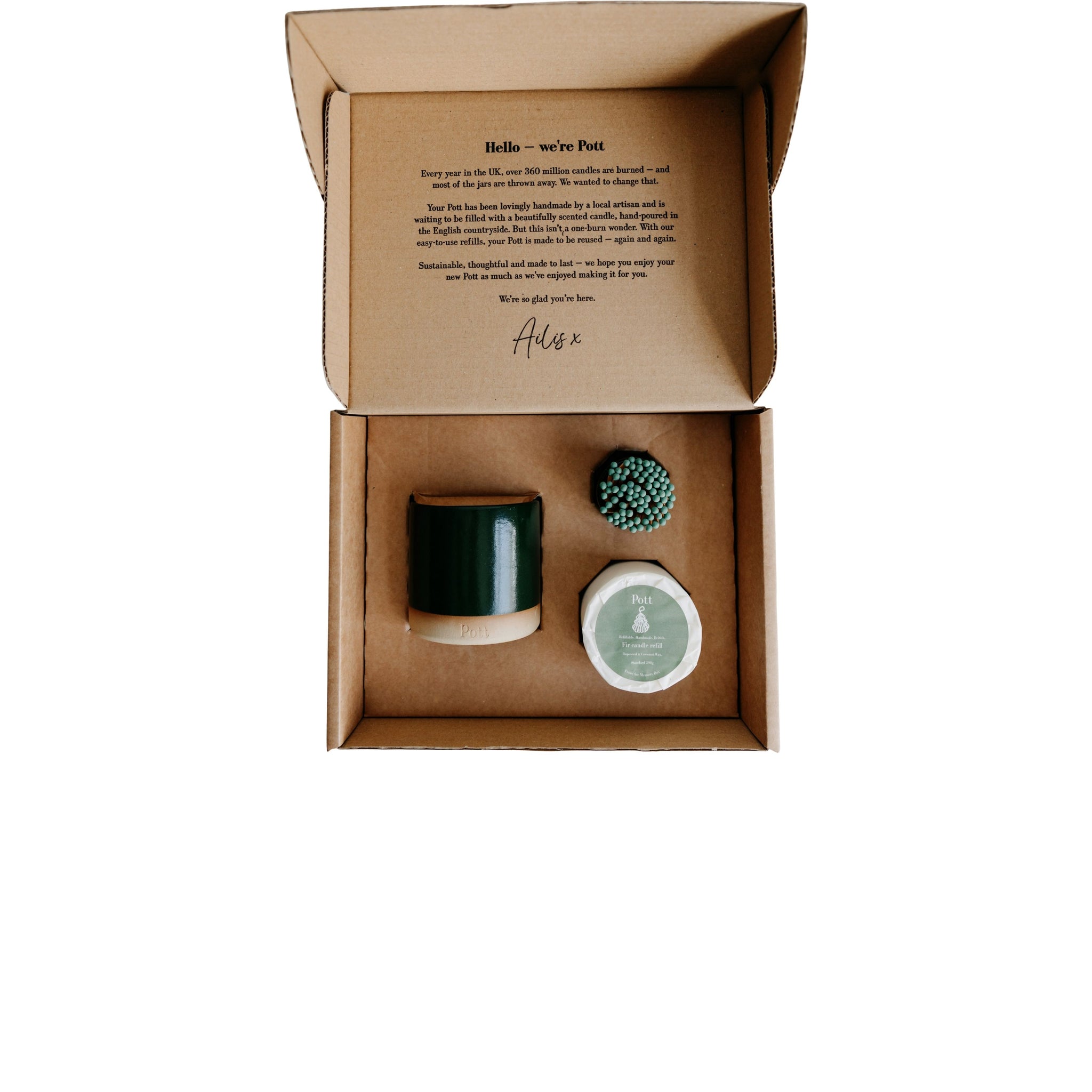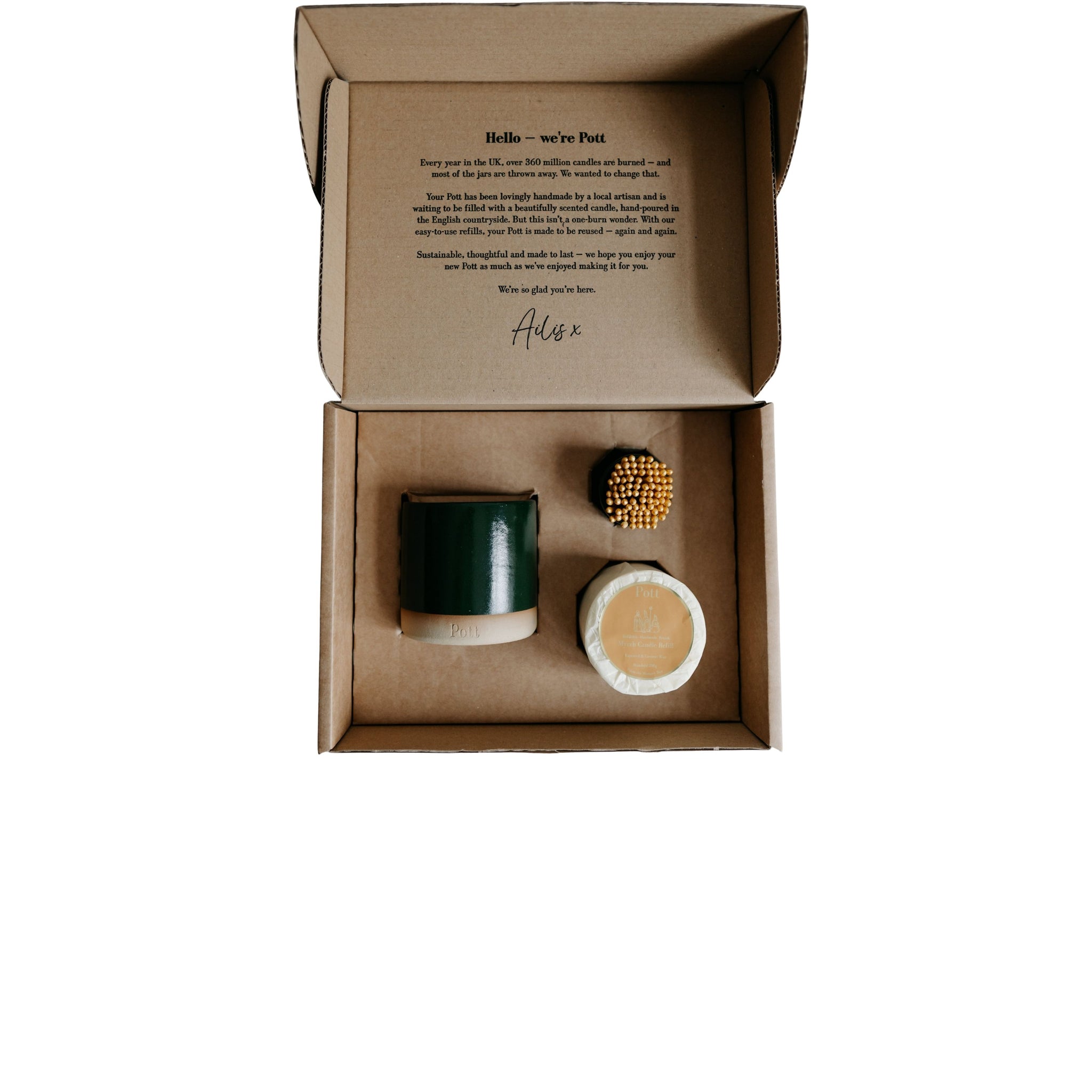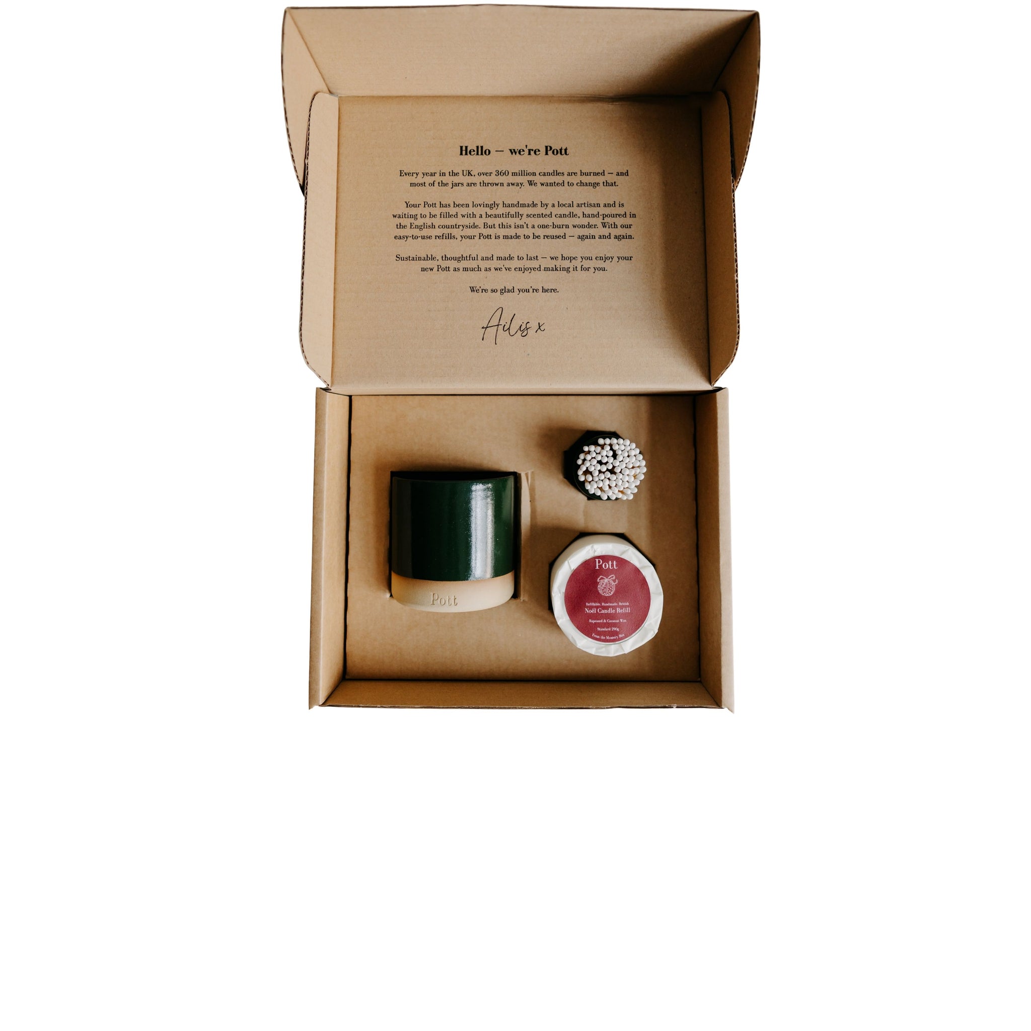 Our Christmas Starter Pack contains everything you need to get you going with your refillable candle! It includes our best-selling Standard size refillable Pott, your first refill scent, and a matching coloured MatchPott.