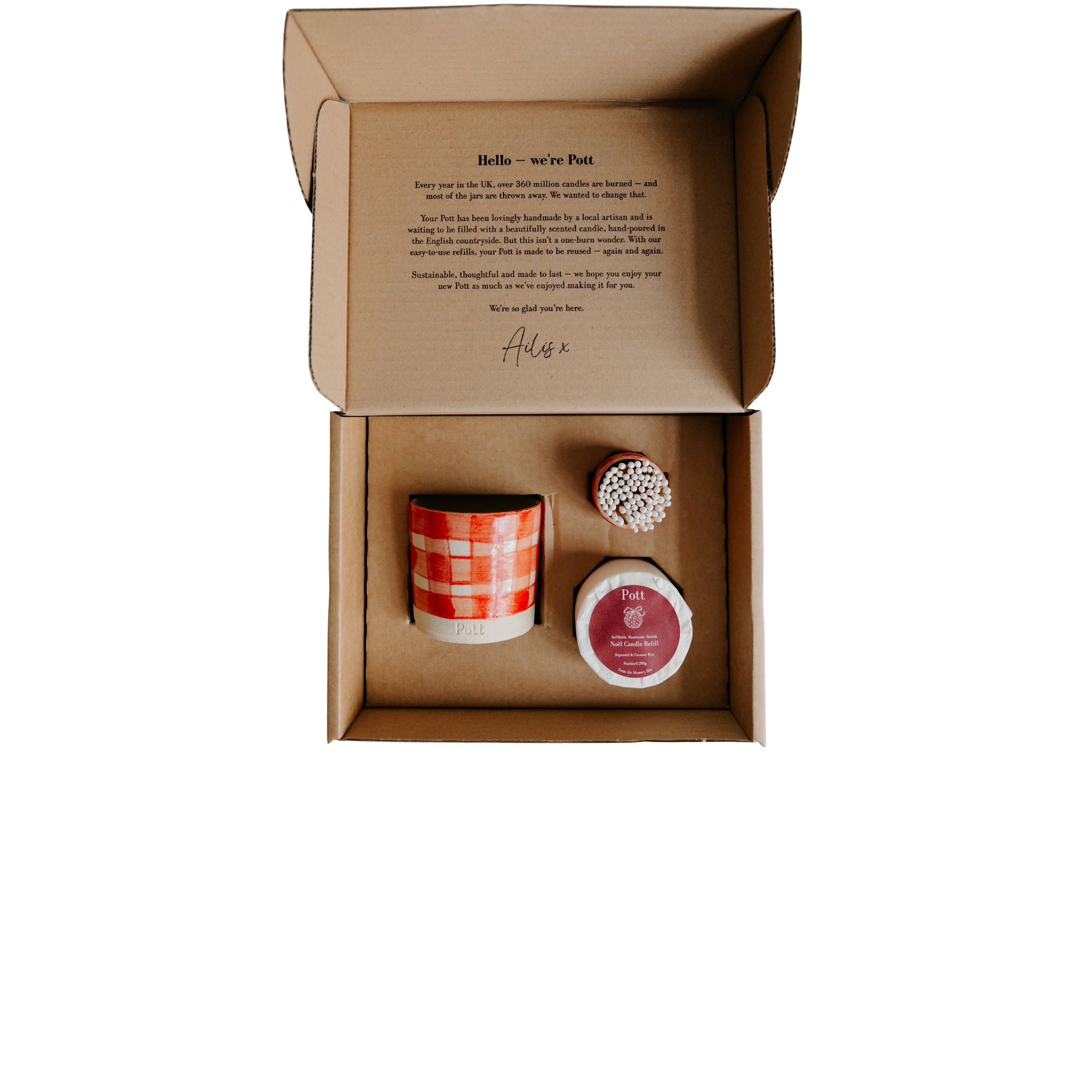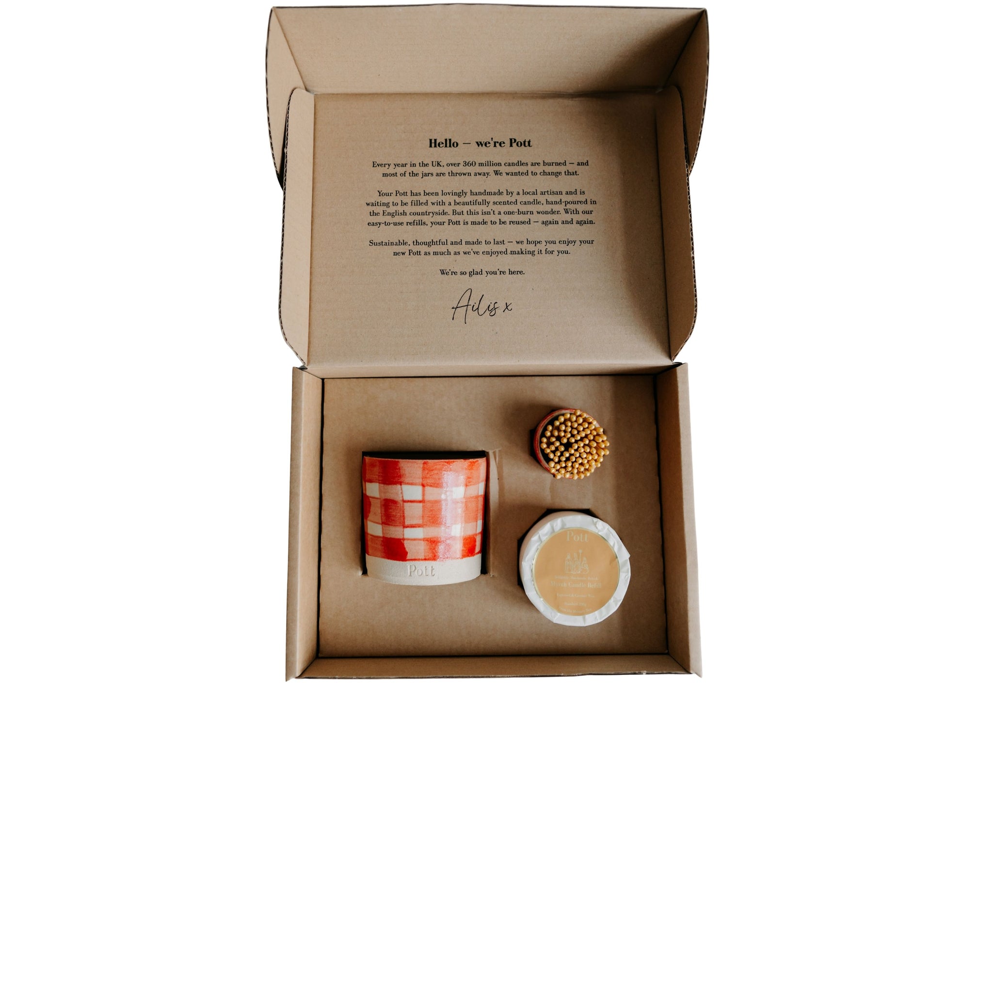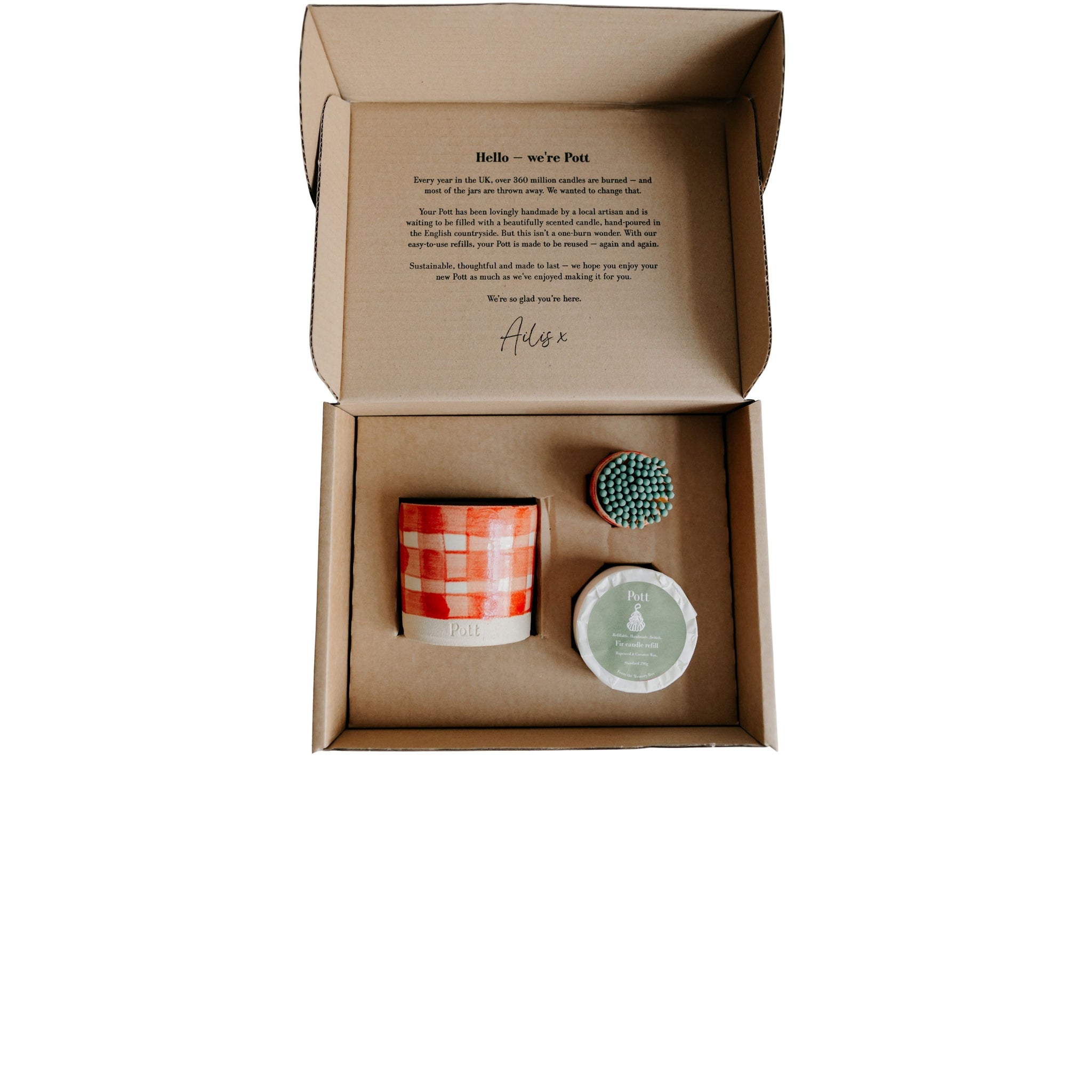 Our Christmas Starter Pack contains everything you need to get you going with your refillable candle! It includes our best-selling Standard size refillable Pott, your first refill scent, and a matching coloured MatchPott.