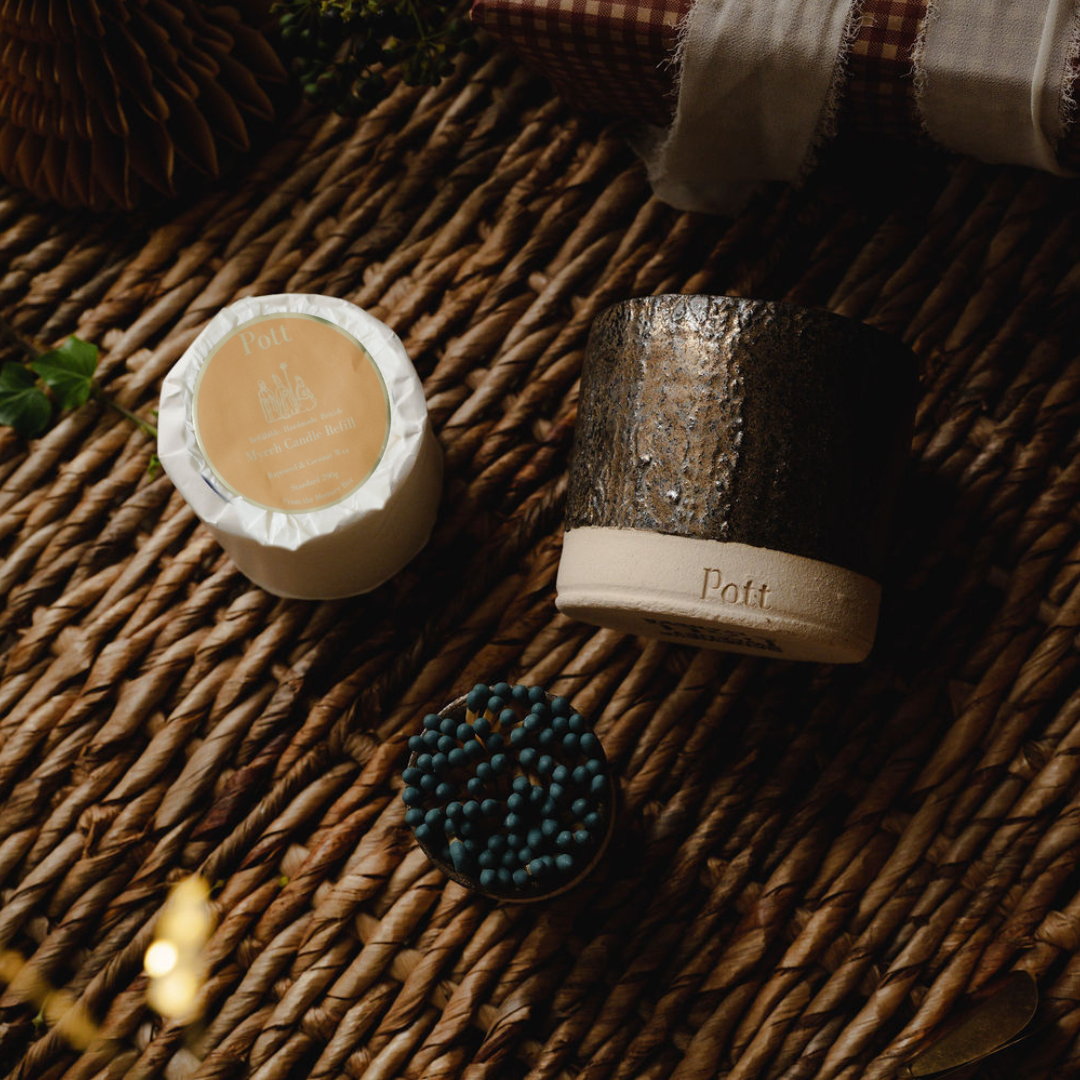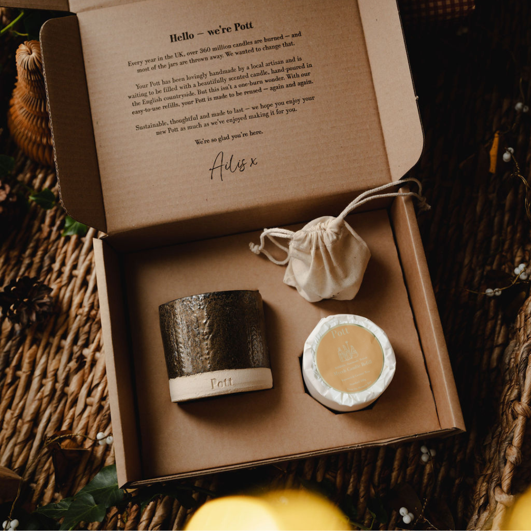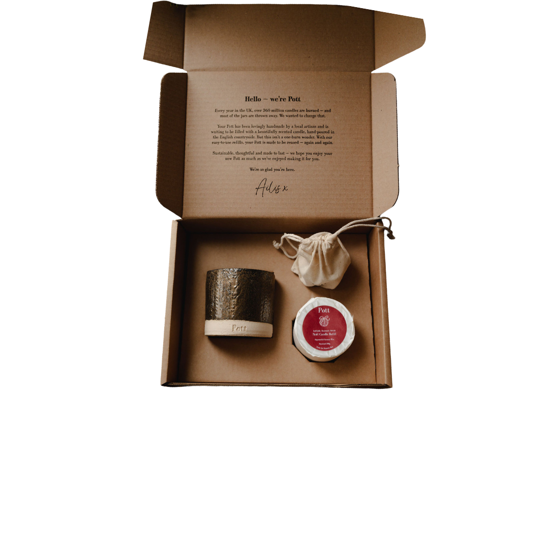 We’ve partnered with British knitwear designer Genevieve Sweeney, to create The Cableknit Pott. Inspired by one of Genevieve’s cosy knits, it has a subtle cableknit texture and an antique blackened gold glaze finish. Each piece is handmade by British potter Charlotte Manser.