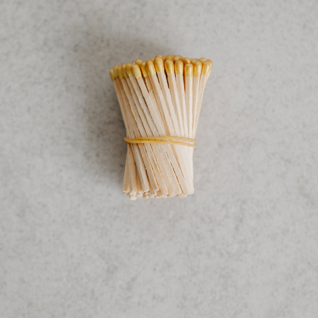 Matchsticks fit for a king. Limited edition, gold matchsticks for your MatchPott. There are roughly 80 matchsticks included, along with a replacement striker pad.