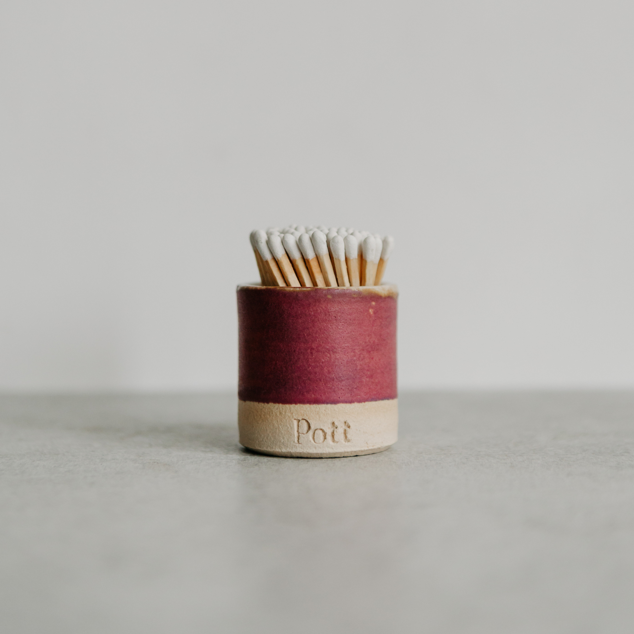 Limited edition, refillable matchstick holder with white matches. This collection was made by British potter, Charlotte Manser and is inspired by our seasonal scent, Rhubarb.