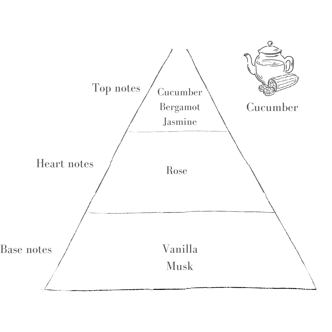 With notes of Cucumber, Earl Grey tea, Bergamot & Jasmine, this scent captures the refined, refreshing and indulgent atmosphere of a quintessentially British afternoon tea.