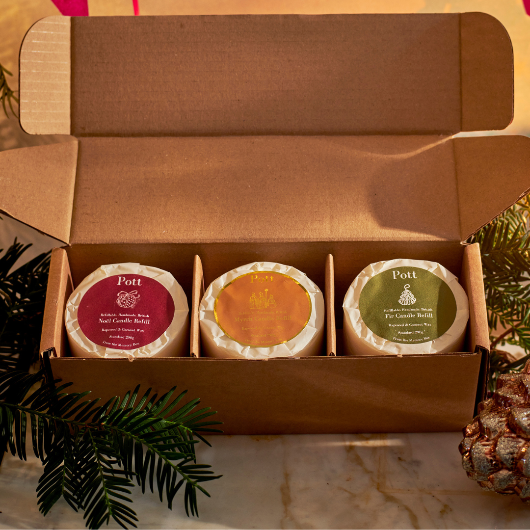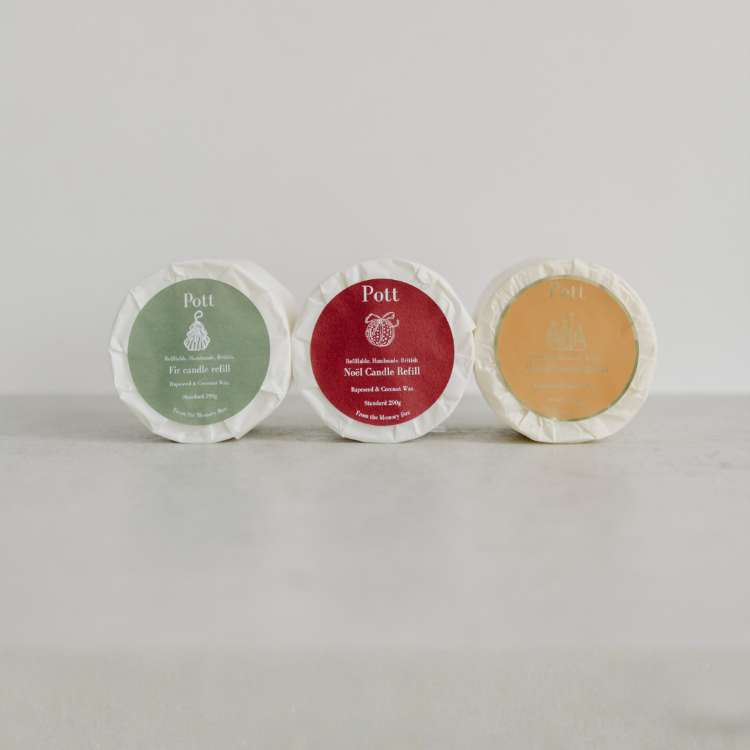 These standard refills are 290g and have a burn time of 60 hours. They are made for our standard Potts, which you can shop here